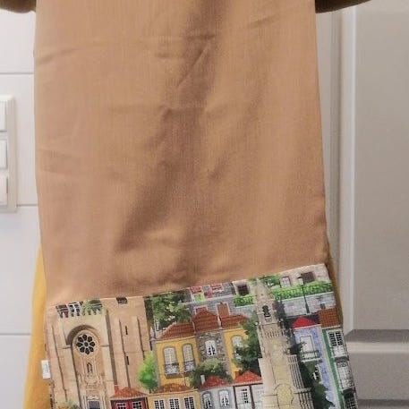 Grått, brunt, tynt, sheer, lett gjennomiktig, blokkstripet skjerf med frynser. Ulikt stoff på lys og mørk del. Mangler stofflapp, tør ikke gjette, føles som både lin, ull og silke (så store rom for feil).