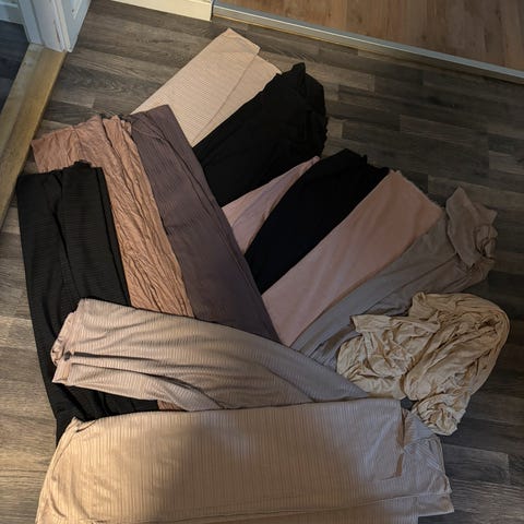 Noen skjerf er helt nye og ubrukte.