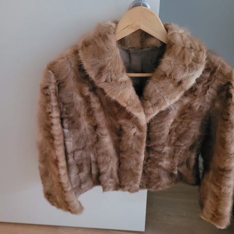 Lang pelskåpe i brun farge. Kåpen har lang lengde og helfigurdesign med lange ermer. Materialet er mykt og glatt. Passer til bruk som ytterplagg i kaldt vær.