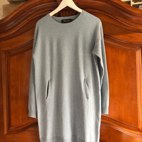 Fin kornblå kjole fra Dondup, italiensk str. 44, tilsvarer omtrent S. Glidelås i siden. Ingen skader.