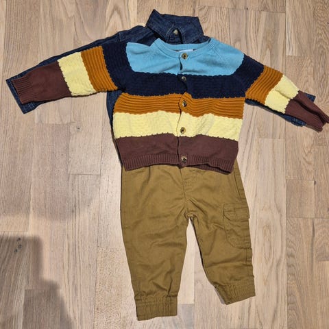 Newbie brun fløyelsbukse i str 86 og Noa noa tynn jakke i str 86. Brukt av ett barn. Ingen skader eller flekker.