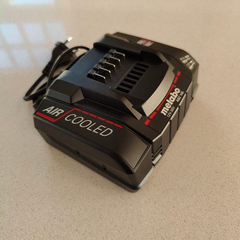 Luftkjølt kraftig hurtiglader for Metabo slide batterier i alle Volt-klasser (12 -18 - 36 V). Ny fra esken, testet men ikke brukt.