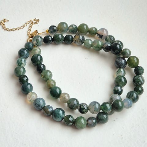 Halsgrop kjede i 40 cm m sølvlås. Laget av perlemor, ferskvannsperler og stener.