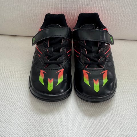 Pent brukte fotballsko. Kun bruksmerker etter gummigranulat.