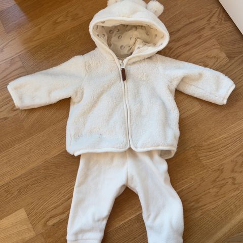 Søt og varm fleecesett med genser og bukse, med bomullsfôr inni og tykk fleece utenpå.