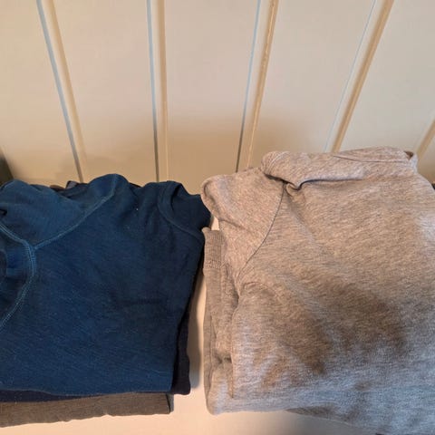 2 hettegensere, 1 college genser, 3 t-shirt, 1 joggebukse, 1 thights