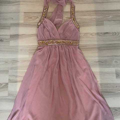 Dette er en plissert maxi kjole et pyntet belte i midjen
