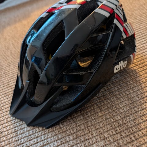 MET Sykkelhjelm. Sykkelhjelm i hvit farge med flere ventilasjonsåpninger. Hjelmen har justerbare stropper og innvendig polstring for komfort og sikkerhet. Passer for både menn og kvinner. Brukt et par ganger. Hentes på Bryne.