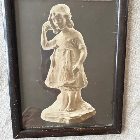 Alfr. Nilsen innrammet bilde som viser en mor og to barn i svart-hvitt. Bildet er innrammet i en enkel ramme med oppheng bak. Passer til dekorasjon og samling.
