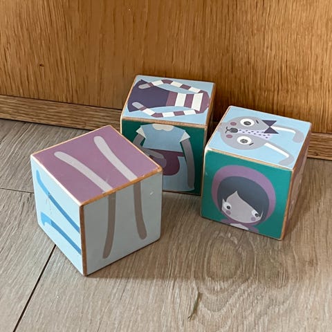 Mange plater og masse fargerike deler i forskjellige størrelser.