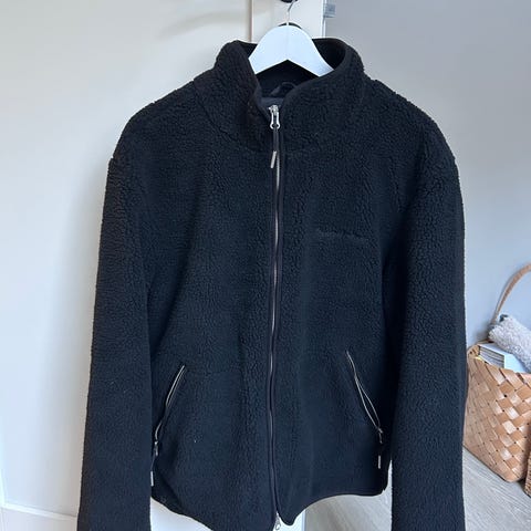 Arket fleecejakke i svart farge, størrelse S for herre. Jakken er laget av fleece materiale som gir varme og komfort. Den har en høy hals og glidelås foran, egnet for hverdagsbruk og utendørsaktiviteter.