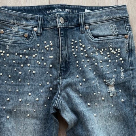 Marie Philippe Bukser i brun (Chocolate) farge, størrelse 34. Bukser med glidelåslomme og detaljer i skinnimitasjon på bena.