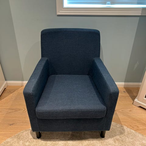 Stolene er pent brukt, er noe «skitne» men ikke veldig synlig. Kommer mest sannsynlig fra dongeribukser. Stolene er veldig fine i lyst teddystoff og bein i lys eik. Har nesten kun stått til pynt. Opp til setet er det 37 cm