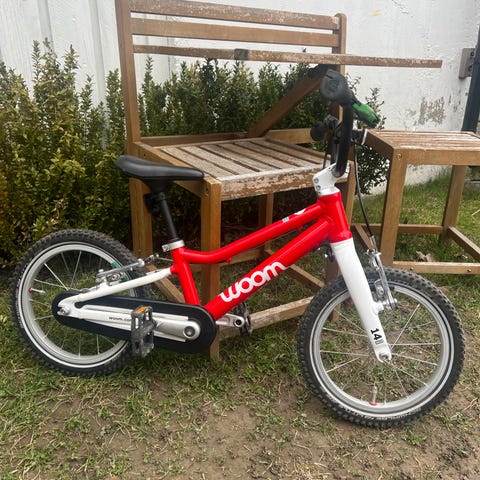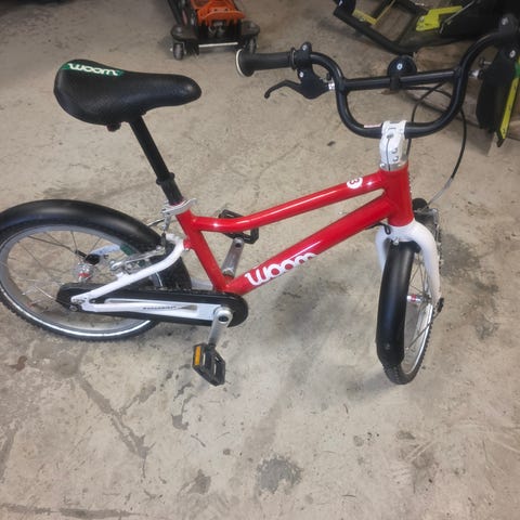 Selger vår flotte Woom Go 3 barnesykkel med 16 tommers hjul, passer perfekt for barn ca. 4–6 år (høyde ca. 105–120 cm). Sykkelen er lett og enkel å håndtere, ideell for barn som lærer å sykle eller allerede sykler trygt.