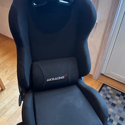 Den ene armlenen fungerer ikke som den skal, noe har løsnet innvendig i mekanismen for å ta den opp og ned, ellers er stolen ganske pen. +Liten ripe på baksiden av stolen som nesten ikke syntes.
