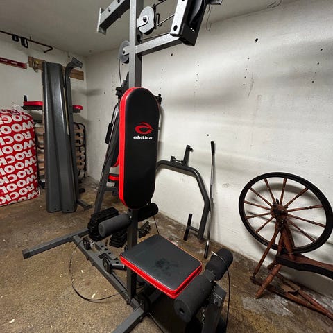 Har vært lite brukt hjemme hos oss. Ettersom vi kjøpte det for å begynne å trene men fant ut at dette ikke var noe for oss. følger med manual for hvordan man skal sette den opp igjen😊JK Fitness Multi Treningsapparat for hjemmetrening med flere funksjoner for styrketrening. Utstyrt med vektstabler, justerbar benk, håndtak og stropper for ulike øvelser. Farge svart, laget av metall og polstret materiale. Passer for generell styrketrening hjemme.