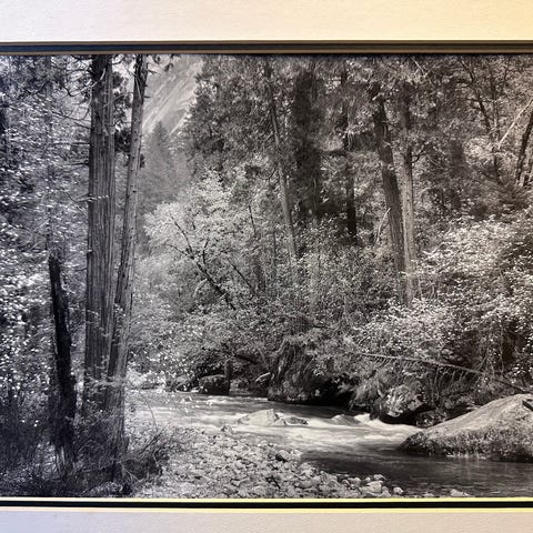Selger et vakkert kunstfotografi med tittelen "Å finne veien". Bildet er tatt med en spesiell infrarødt teknikk som gir naturen et drømmeaktig og tidløst uttrykk som skiller seg ut på veggen.