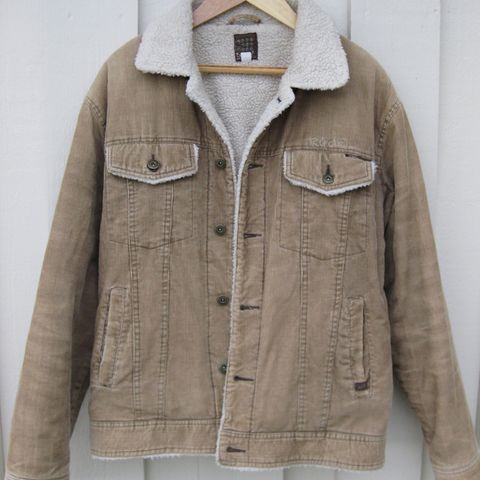 Brun cordjakke med teddyfor str xxl selges. Pent brukt, ingen bruksmerker eller skader. Trykknapper i front og nederst på ermer, samt i nederkant for justering av vidde. Kan hentes i Trondheim evt sendes.