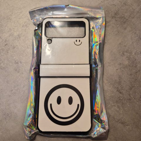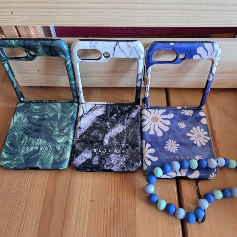 1 uåpnet deksel (blå) og et pent brukt deksel til flip4-mobil. Dekselet er med ring som gjør det mulig å henge mobilen rundt halsen, i beltet eller liknende. Originale samsung-covere.
