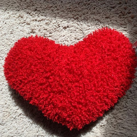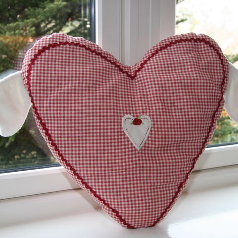 hjertepute, hjerte, pute, tekstil, stoff, tøy, bamse, bjørn, barn, barnerom, pynt, dekor, oppheng, julepynt, jul, retro, vintage, nostalgisk, søt, grønn, rød, gave, samler, håndsydd