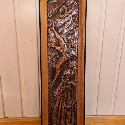 Kobberstikk og tekst «slott over slott jeg bygger». Høyde 46 cm, bredde 26 cm. Navn Høyland tegnet på baksiden, men ukjent om det er kunstneren