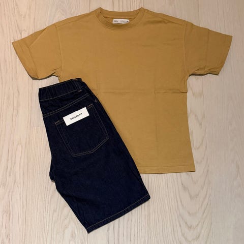 Liten klespakke med marineblå/offewhite/stripete t-skjorte str. 140 / 9-10 år og stenvasket mørkegrønn sweat shorts str. 134 / 9 år begge deler fra Zara, svært pent og lite brukt, selges samlet kr. 250,-. Hentes Lillehammer. Kan også sendes mot at kjøper dekker porto.
