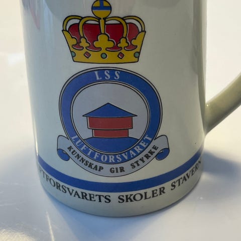 Flott krus fra den kongelige norske ambassade i Russland. Med illustrasjoner av begge nasjoners folkedrakter og tekst på begge språk. Stempel fra Konakovskiy fajanse, etter hva jeg kan se.