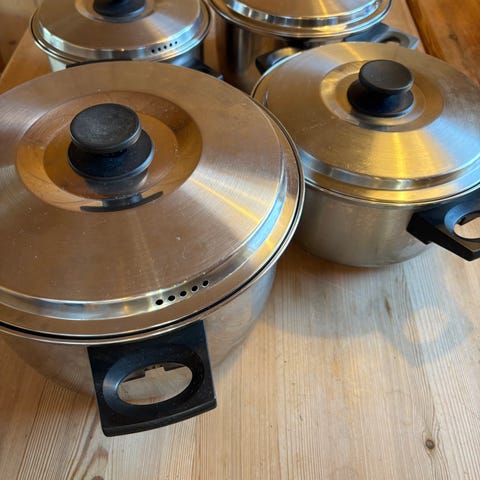 3 stk kjeler 2 fra høiang og en blomstrende kjele . 100 kr for liten og 200 kr pr stk for de andre . Kan sende