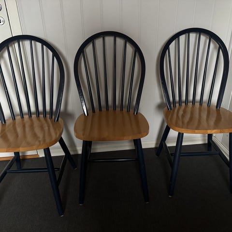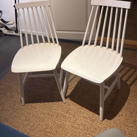 Selger 2 peik retro pinnestoler fra Sandvik møbel. Trenger nok et malingsstrøk, sjå bilder :) selges samla for 700,-