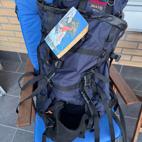 Alaska Tursekk Ryggsekk i blå og lilla farger. Utstyrt med flere lommer og justerbare stropper for tilpasning og komfort. Passer til utendørsaktiviteter som fotturer og turer i variert terreng. 65 Liter