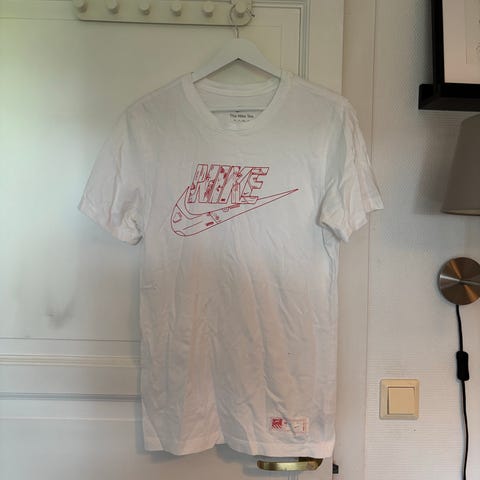 Nike The Nike Tee T-skjorte i størrelse M, fargen hvit. Laget av 100 % bomull. T-skjorten har rund hals og kort erm, med brodert Nike-logo på brystet. Passer for ung gutt