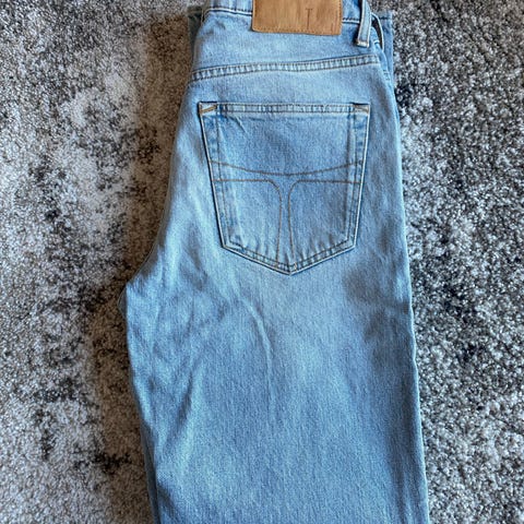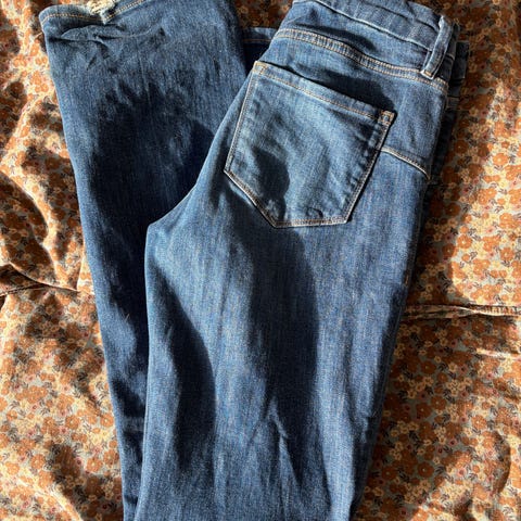 Veldig kule og spesielle Levi’s bukser,jeans. Pent brukt str 27, men vil si de er litt store i str. jeg bruker S/M i bukser til vanlig og disse passer fint. Sitter fint på rumpa og passer meg i lengden akkurat som er 170cm. Meget kule detaljer i livet og rå kant nede. I fin stand.
