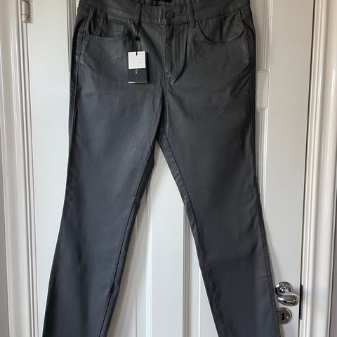 Buksen er «coated»( belagt på utsiden, som gjør at den får litt skinn utseende)