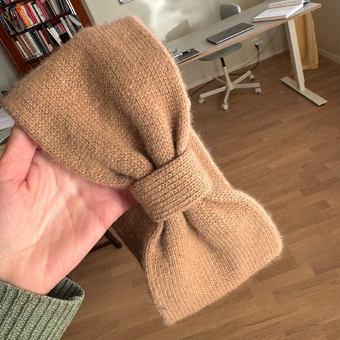 SOLGT: Kari traa sett med hals og lue i olivengrønn og rosa