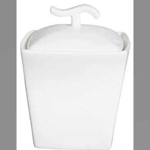 Bredde er 10x10cm. Høyde 7 / 12cm (uten/ med lokk)