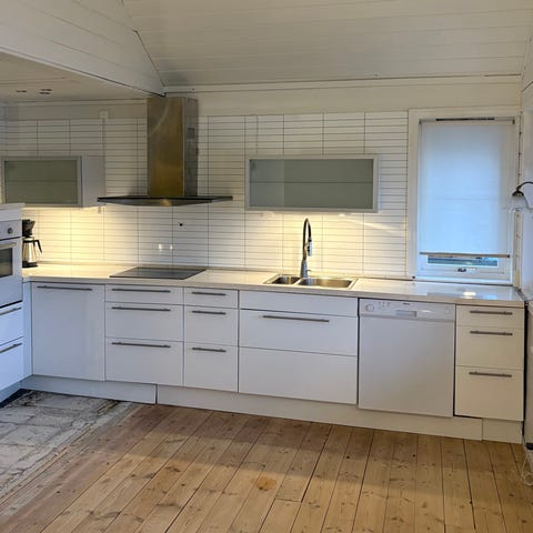 Overskap selges som vist på bildene. Kjøkkenet er i god stand og vasket utvendig og innvendig.