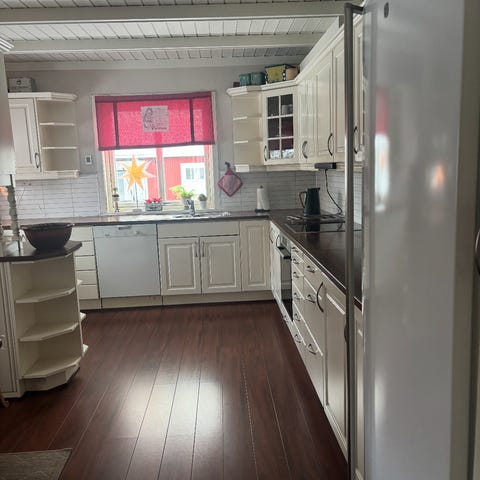 Overskap og benkeplater, samt hvitevarer er fortsatt tilgjengelig.