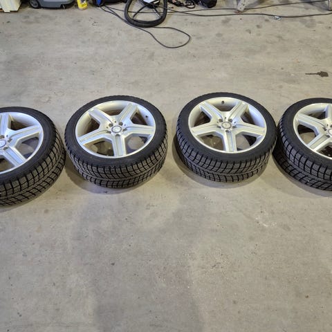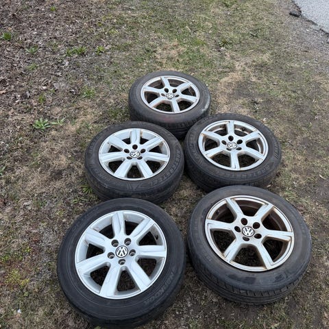 Hele og greie komplette vinterhjul til VAG og noen Mercedes selges. 2 av felgene trenger en grundig vask, men fungerer fint. Dekkene er fra 2015. Men masse mønster igjen. Selges meget billig.