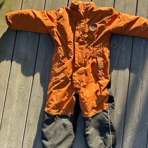 Kuling dress til høst/vår i størrelse 110, unisex modell i mørke grønn farge. Laget for barn med funksjonelle detaljer som elastiske mansjetter og stropper ved bena for god passform og bevegelsesfrihet. Brukte få ganger, ingen slitet og i god stand.