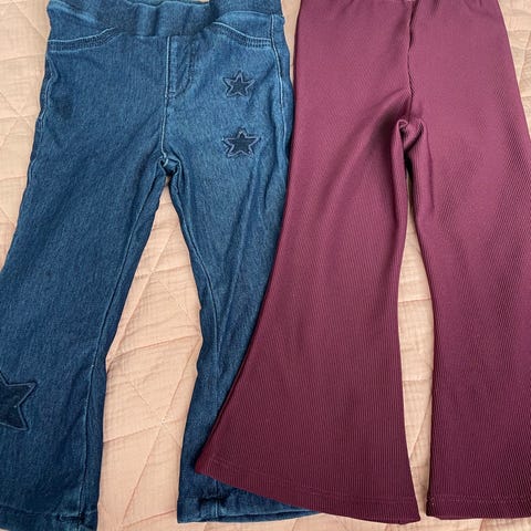 2 stk flared leggings i str 92. En i mørk blå og en i lys blå denim. Super søte!