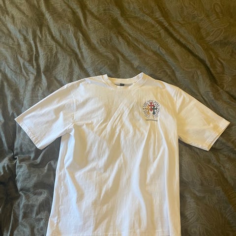 VG-BUD T-skjorte i hvit farge, størrelse S. T-skjorten har et VG-BUD-logo på brystet og er laget med regular passform. Jeg fikk den når jeg var VG-BUD, veldig komfortabel materiale.