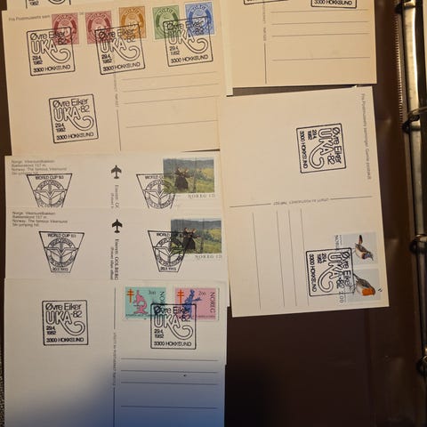 Samling av frimerker med ulike motiver og årstall, inkludert blomster, historiske personer, og diverse temaer. Stort sett norske og tyske.De fleste av frimerkene er organisert i album og permer, med varierende farger og design. Passer for samlere,antikvitetshandlere, philatelistforening eller som referansemateriale.