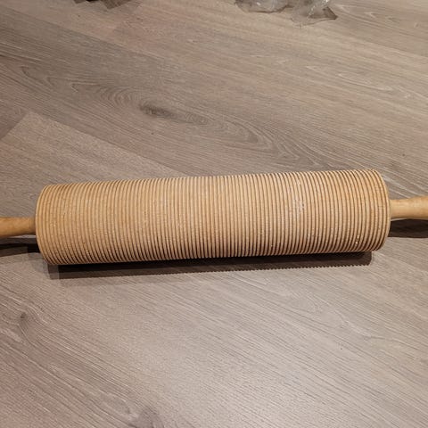 Gammeldags kjevle. For å få tyngde så fylles den med vann.