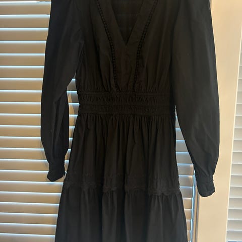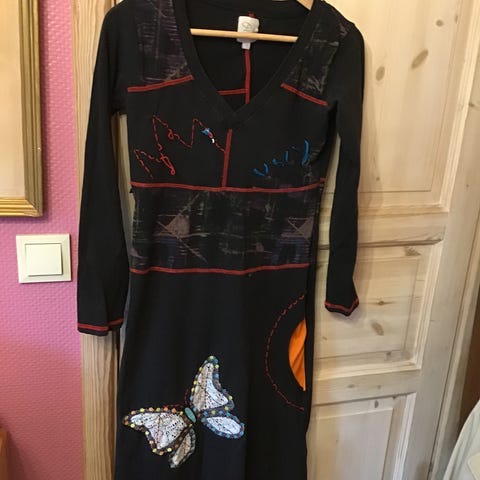 Flott bomullskjole ettersittende overst og med mye vidde i skjørt. Utrolig fin på!