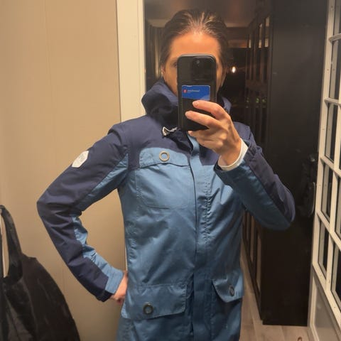 Lite og pent brukt vinterjakke, lengre modell. Ikke vasket. Str M. Røyk-og dyrefritt hjem.
