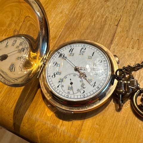 Gull lommeur med kjede 32 gram totalt 80 gram alt i 14 karat gull