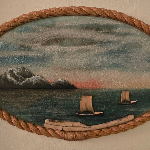 Bilder laget av stein treverk å hamptau. Fine kunstverk.