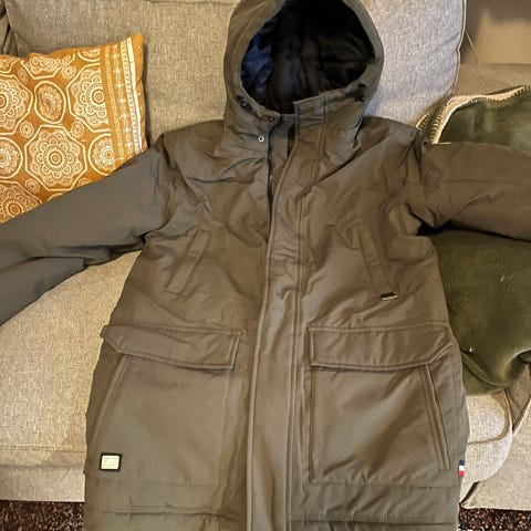 Varm og god Svea jakke str. S selges. En liten skade på armen er sydd sees på vedlagt bilde. Passer både gutter og jenter.