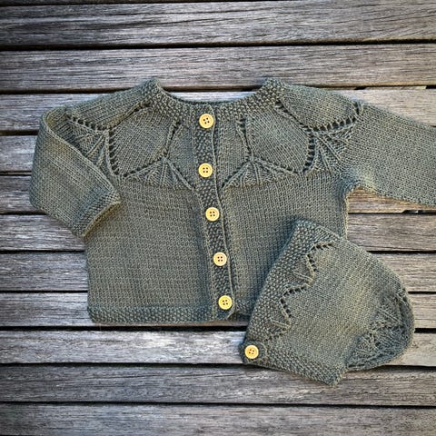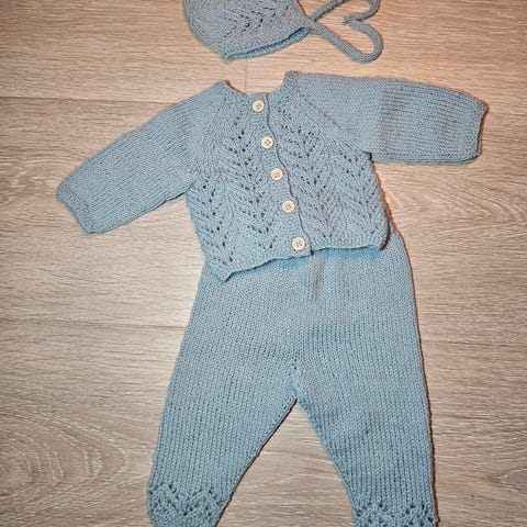 Strikkajakke og strikkabukse.