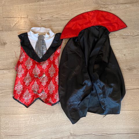 Overdel og kappe til drakula-kostyme i str. 110/120